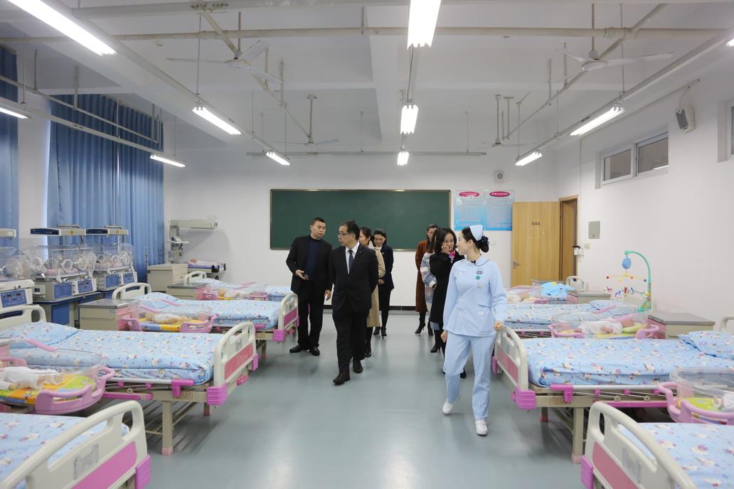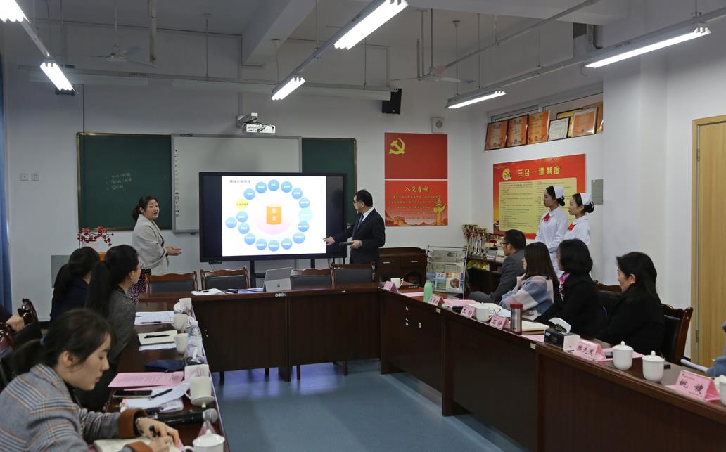 【本网讯】11月19日,学院在青年路校区护理实验实训楼607召开中日国际介护人才培养研讨会,与日本德州会医疗集团、四川中留国际教育共同研讨中日国际介护人才培养。会前,日本德州会医疗集团国际部部长佐藤昌则先生一行参观了护理实验实训楼;在研讨会上,学院院长石静出席会议并讲话。日本德州会医疗集团国际部部长助理朱丽佳、四川中留国际教育总经理印湘垠、校园管理部部长杨笑笑、邓国慧、学院副院长樊先茂、护理学院党总支书记姚婕、院长王静、副院长廖书娟参加了会议。会议由外事办主任文艺主持。