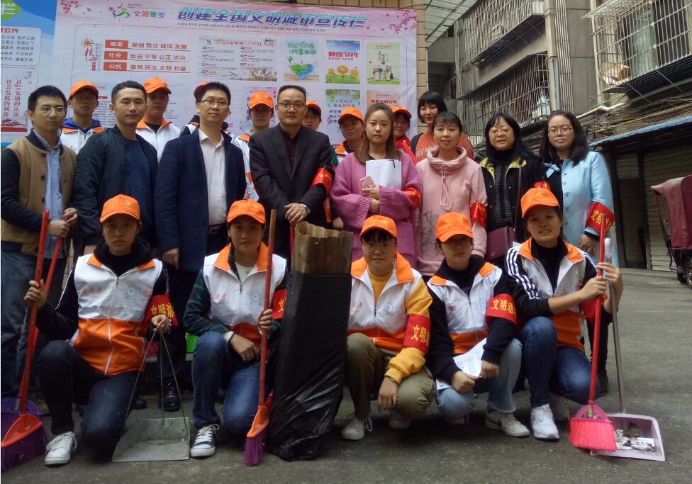 【本网讯】市民多一份文明,城市多一份精彩。10月26日下午,在学院副院长樊先茂等学院领导的带领下,临床医学院团总支张晓惜老师携青志协15名志愿者,于雅安市雨城区溪沟巷社区开展创文明城市—社区卫生清扫活动。
