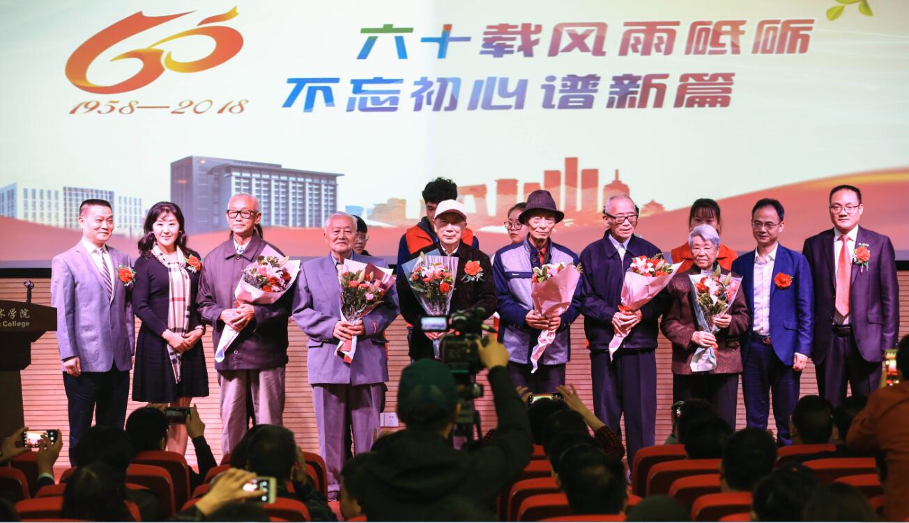 在场人员观看了院庆宣传片《六十年筚路蓝缕 不忘初心谱新篇》、诗朗诵《风雨同舟60年》和手语《感恩的心》,医院离退休老同志向医院赠送字画。接着学院领导向医院建院老同志代表献花、职工代表向历届医院领导代表献花、医院领导向“30年风雨同舟奖”获得者代表颁发荣誉证书。“30年风雨同舟奖”获得者代表张明英和青年职工代表王旭分别讲话,表达了对医院获得现在成就的自豪和对未来发展的期望。薛正毅带领医院职工代表和医学生代表重温医学生誓词。