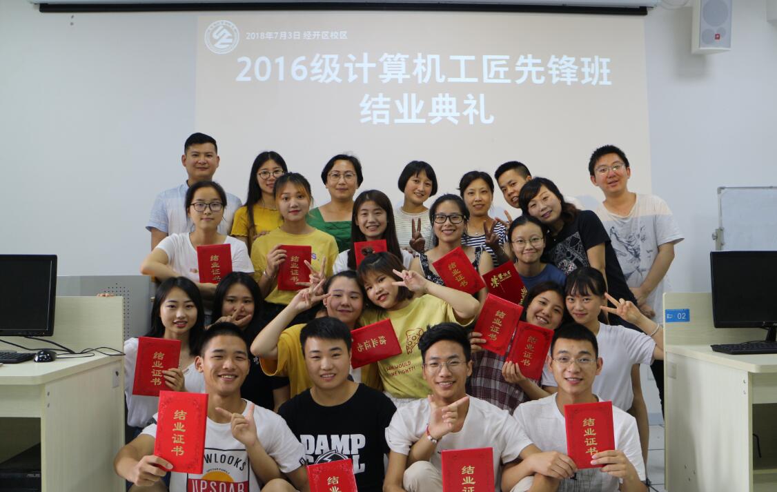 经评委打分,计算机工匠先锋班全体15名同学顺利结业,郭雨佳、陈玉莲、彭秋月三名同学表现优异,获得优秀学员证书,到场老师为大家颁发了结业证书。