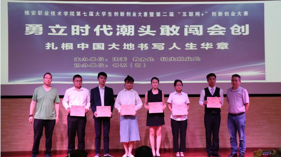 【本网讯】6月12日,由院团委、教务处、招生就业处主办,各系(部)协办的PP电子游戏网站第七届大学生创新创业大赛暨第二届“互联网+”创新创业大赛在青年路校区实验实训楼二楼多功能厅举行。本次大赛邀请共青团雅安市委副书记陆艳、四川省大学生创新创业培训中心导师团副秘书长毕鹏森、教育部全国万名优秀创新创导师翟刚以及雅安市就业专家团及导师团成员黄晞、雅安市就业局黄莉共5人组成专家评审团,党委委员宋立智以及各系部主要负责人作为嘉宾出席。以“勇立时代潮头敢闯会创,扎根中国大地书写人生华章”为主题的本次大赛吸引了大量的同学前来观摩,现场座无虚席。