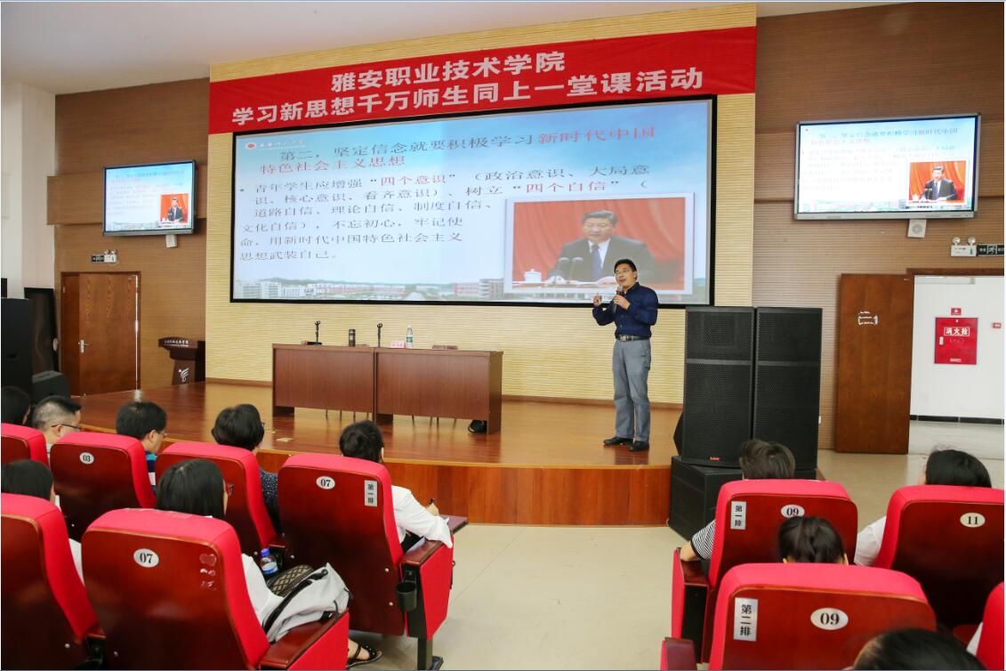 【本网讯】6月19日下午1点,“学习新思想千万师生同上一堂课活动”在青年路校区实验实训楼多功能厅举行,西华师范大学副校长龙汉武担任主讲,300余名师生同堂学习。活动由付洪涛副书记主持。