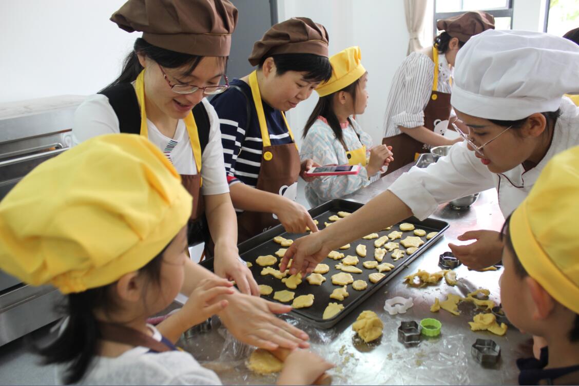 自制饼干环节,工作人员把饼干胚分发后,伴着孩子们的笑声,家长和孩子间的紧密配合,斑马、爱心、小熊、玉米、胡萝卜等一个个栩栩如生、可爱生动的形象随之而出,这不仅是和谐、融洽的配合,也是孩子和家长之间的心理交汇,从孩子欢乐的笑声中,在家长专注和幸福的表情中,美妙的亲子关系不禁在心间流淌。将饼干胚刻成心目中各种生动形象后,需要经过20分钟烘烤,便可让膨胀已久的味蕾品尝亲手自制饼干的甜蜜。