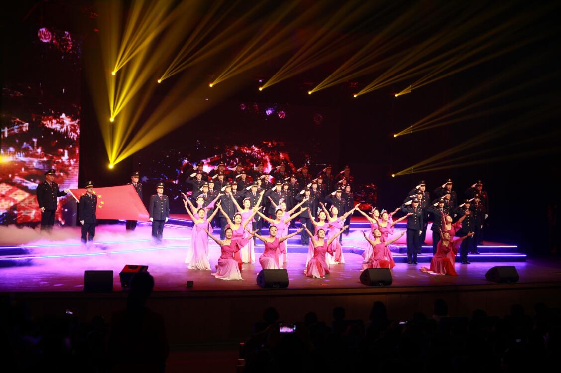 晚会现场,在一束束璀璨的灯光里,美丽的姑娘用她们铿锵有力的舞姿,灿烂的笑容与市工商行政管理局合唱队联合演绎了晚会开场节目《光荣与梦想》,通过舞蹈与合唱的完美演绎,给观众展现了一幅气势磅礴的场面,震撼了现场的每一位观众。