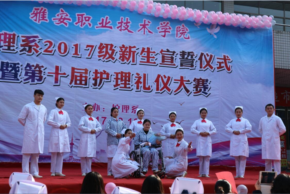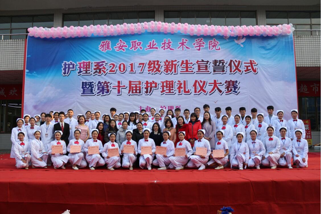 【本网讯】为激励护理系学子继承和发扬南丁格尔精神,12月19日下午,2017级新生宣誓仪式暨第十届护理礼仪大赛在青年路校区举行。护理系主任王静,党支部书记姚婕、副书记李敏,团总支书记万黎、副书记吴玉阳,教研室主任陈俊以及教师代表王菠、谢琳娜等参加了本次大赛并担任评委。