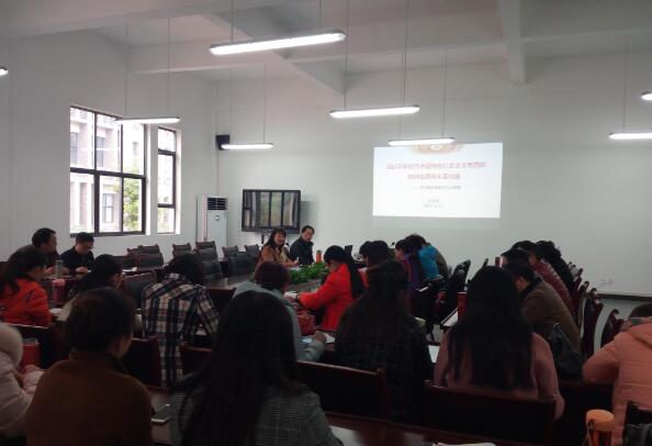 会议在药检系教职工的诗歌朗诵《我骄傲,我是中国人》中拉开序幕。付洪涛为药检系党支部全体教职工上了一堂《习近平新时代中国特色社会主义思想的精神实质和丰富的内涵》的党课。她用平实质朴的言语,用身边看得见的例子,从学习十九大的三点把握、报告亮点等方面解读了十九大精神,让大家理解深刻,受益匪浅。