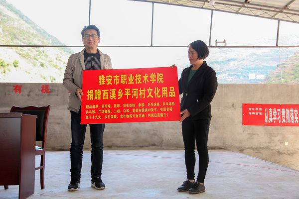 上午10点,宋委员一行到达西溪乡文体活动中心。在西溪乡党支部书记郝冰兰的主持下,广大西溪乡父老乡亲的共同见证下,举行了PP电子游戏网站与西溪乡人民政府校地共建之文化用品捐赠仪式。宋委员代表学院党委和行政讲话。他强调文化扶贫、精神脱贫对实现全面小康具有重大意义,打好文化扶贫攻坚战,是全面提升农村公共文化服务水平领域的一项重要任务。他希望平河村把捐赠的文化用品和物资管理好,使用好,把村文化室建成开展思想道德建设、文化知识传播、文娱活动、致富技能培训的“大舞台”,切实满足村民的精神文化需要。