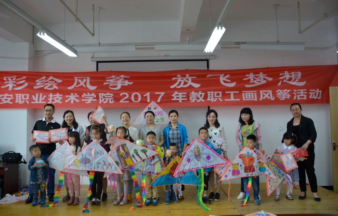 上午9点,参加画风筝活动的教职工及教职工子女欢聚一堂,工会办工作人员为大家分发了风筝、水彩笔、颜料等工具,画风筝活动就此拉开了序幕。创意绘画部分大家进行得如火如荼,不一会儿时间,可爱的海绵宝宝、调皮的米老鼠、疯狂的小鸟、美丽的蝴蝶等一个个生动活泼的画作已跃然纸上,教职工亲子组的小朋友们有的把家庭成员创作为Q版幸福一家人,让人们感受到了浓浓的亲情,也有小朋友将自己喜爱的卡通人物画在风筝上,教职工与小朋友们聚精会神、携手创作,成为本次活动的亮点。2个小时的现场绘制时间很快就结束了,来自学院工会福利委员会的委员和各工会小组的大众评委根据教职工们及小朋友们创作的艺术性、精美性、观赏性分别评比出了本次画风筝活动的教职工亲子组和教职工个人组的一、二、三等奖共计30人,颁发了荣誉证书和奖品。
