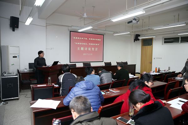 在大家集体观看了《习近平在十八届中央纪委七次全会上发表重要讲话》、《关于加强和改进新形势下高校思想政治工作的意见》印发和2017年全国“两会”新闻视频后,4位党委委员结合学习体会和分管工作,分别以“强化思想教育引领,坚守立德树人使命”、“履好监督职责,确保干部清廉”、“加强队伍建设、增长办学财力,为提高教育质量保驾护航”、“坚持宗旨不动摇,团结一致谋发展”为题作了交流发言,8位中层干部结合部门实际工作,对如何加强学院党的建设,加强教育教学改革,提高人才培养质量,对如何推动各项工作部署落地落实,如何瞄准目标扑下身、撸起袖子加油干,联系学院实际、思想实际、工作实际,进行了交流发言。