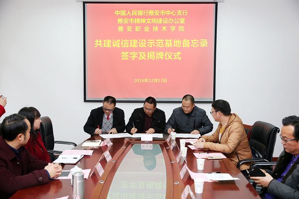 此次三方合作共建诚信建设示范基地是雅安银校合作、校地合作的新内容,必将为三方发挥各自优势深入开展广泛合作,共同推进青年学生社会主义核心价值观教育、个人诚信教育、征信文化校园建设及雅安社会信用体系建设产生积极影响。