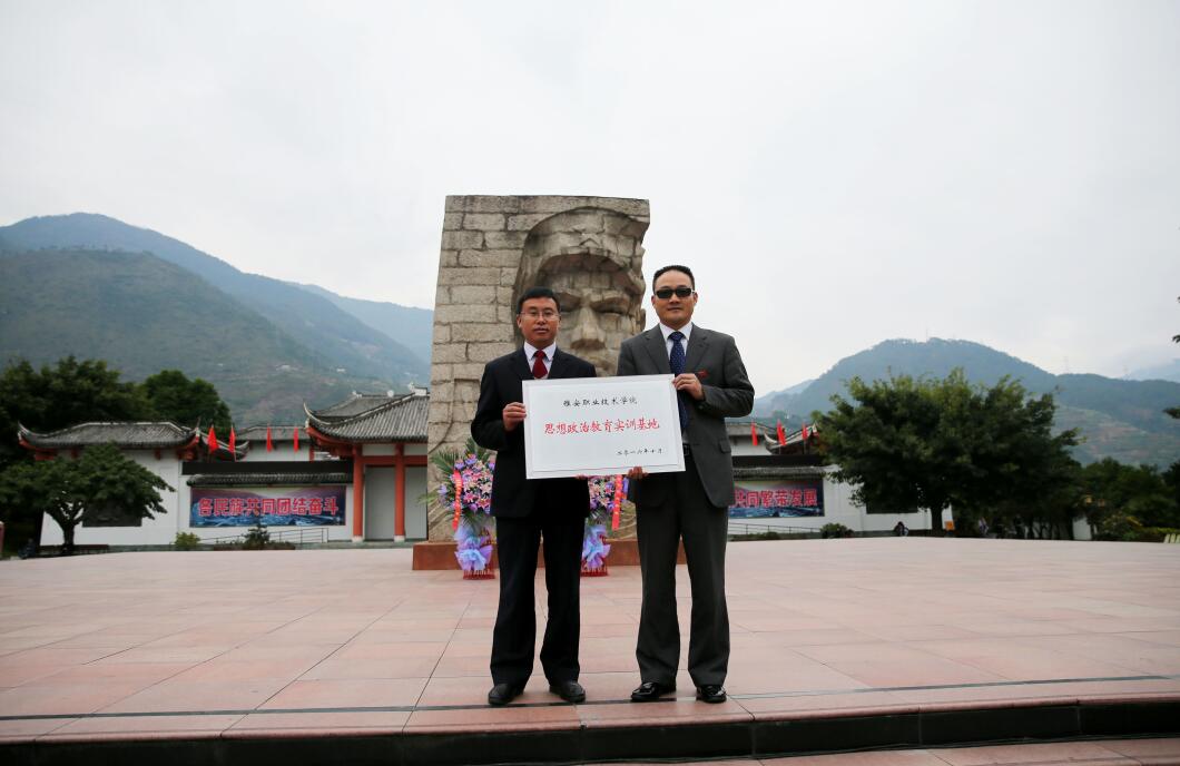 【本网讯】11月1日,学院院长石静带队,学院党委委员、副院长樊先茂、计财处招办党支部、旅经系党支部一行34名党员,到石棉县安顺场中国工农红军强渡大渡河纪念馆举行“PP电子游戏网站思想政治教育实训基地”授牌仪式暨党支部纪念红军长征胜利80周年,重走红军长征路活动。