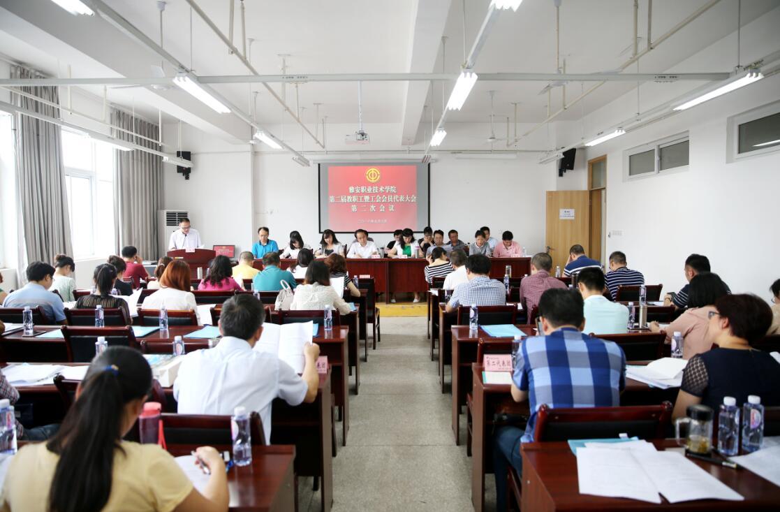 【本网讯】7月7日,雅职院二届二次教代会暨工代会在青年路校区图书综合楼903会议室召开。学院领导班子,70余名正式代表出席会议,来自学院各职能部门、各民主党派有关负责人及市人大代表、政协代表列席了会议。