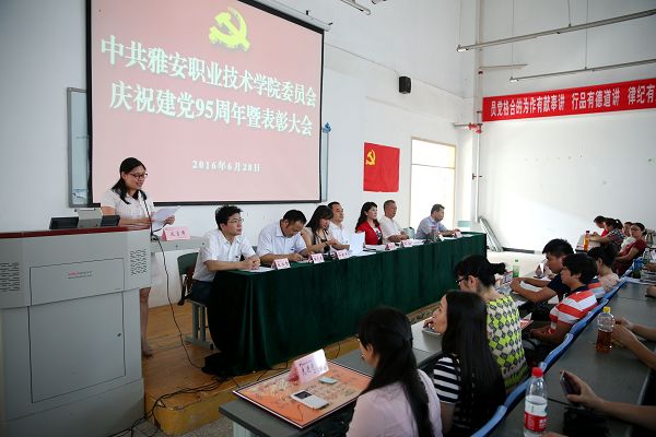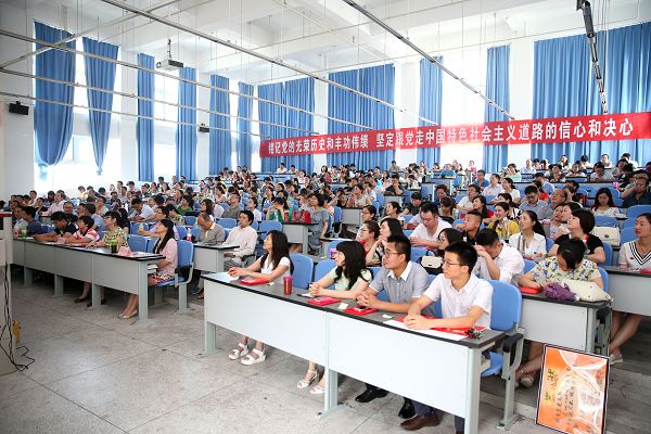 【本网讯】在迎来党的95周年华诞之际,6月28日下午,在青年路校区图书综合楼101阶梯教室,学院隆重召开庆祝建党95周年暨表彰大会。学院党委班子成员、在职党员、离退休党员、学生党员代表、中层干部及市人大代表、市政协委员、民主党派代表共300余人参加了大会。大会由院长石静主持。