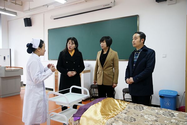 刘晓晨副书记先到达到我院经开区实训与服务中心,在张大凯、石静的陪同下边走边看,听取了副院长谭凌对该校区资金来源、建设过程、功能布局等情况的简要汇报后,对学院班子攻坚克难,敢于打硬仗的重建精神予以了肯定;在青年路校区,她兴致勃勃地参观了护理实训中心、生命科学馆和教师技能训练中心,对学院在经费紧张的状况下持续保障教学投入改善办学条件,确保人才培养质量的做法赞许有加;在大学生创业俱乐部,她与创业团队的同学们亲切交谈,鼓励他们要在“大众创业、万众创新”时代背景下学好专业知识,掌握技术技能,发挥聪明才智,勇于尝试、大胆创新,不断累积创业创新的经验。