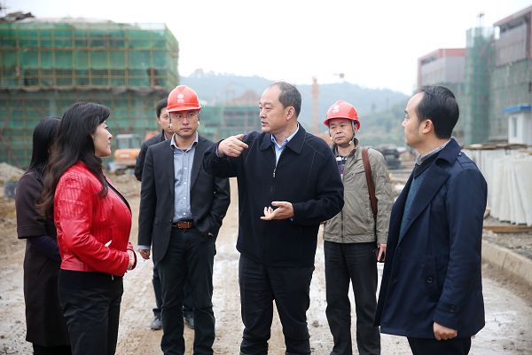 【本网讯】11月12日,雅安市市长兰开驰到我院实训与服务中心灾后重建项目施工场地进行现场调研。副市长徐旭,市教育局、经开区、规建局、电力公司负责人及学院党委书记张大凯、院长石静、副院长谭凌等陪同视察。