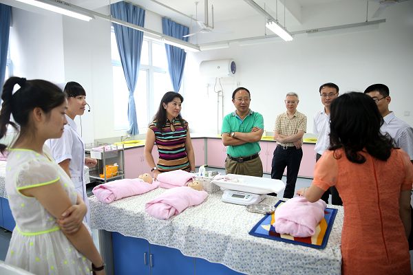 薛建平一行还参观考察了我院的实验实训室,积极肯定了优良的实训条件。我院党政办、教务处、护理系、旅经系、招生就业处、附属医院等部门负责人参加了交流。