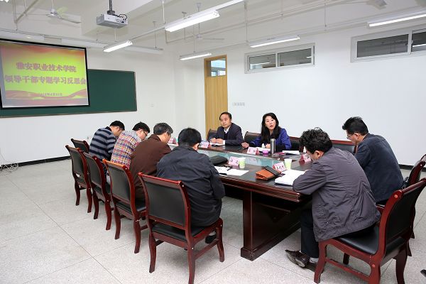 为深入贯彻全省领导班子思想政治建设工作会议精神,深入扎实开展好领导班子思想政治建设工作和“三严三实”专题教育,在分散自学的基础上,4月21日,学院党委先后召开中心组(扩大)专题学习会、领导班子思想政治建设工作检视反思会以及以“讲政治、守纪律、守规矩”为主题的专题反思会,学习贯彻中央、省委关于严守政治纪律、政治规矩的文件精神,并对照相关要求,进行深刻检视反思讨论。