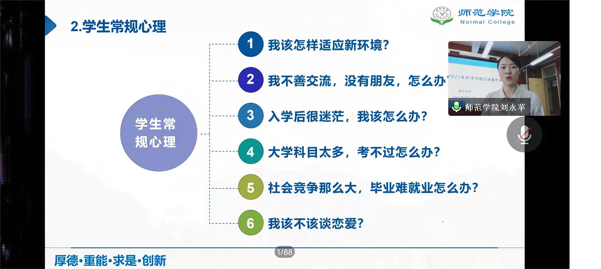 9月17日至18日,PP电子近6000名2022级新生迎来了一个特别的“云端”入学教育。为了帮助受疫情影响不能到校学习生活的2022级新生尽快转换角色,适应大学生活,了解校规校纪、明确学习目的、掌握学习方法、树立奋斗目标,各二级学院精心准备,提前筹划,集体研讨,力求为新学期开好局、起好步做足保障。教务处、招生就业处、各二级学院教职工以及全校6000余名新生共同参加。