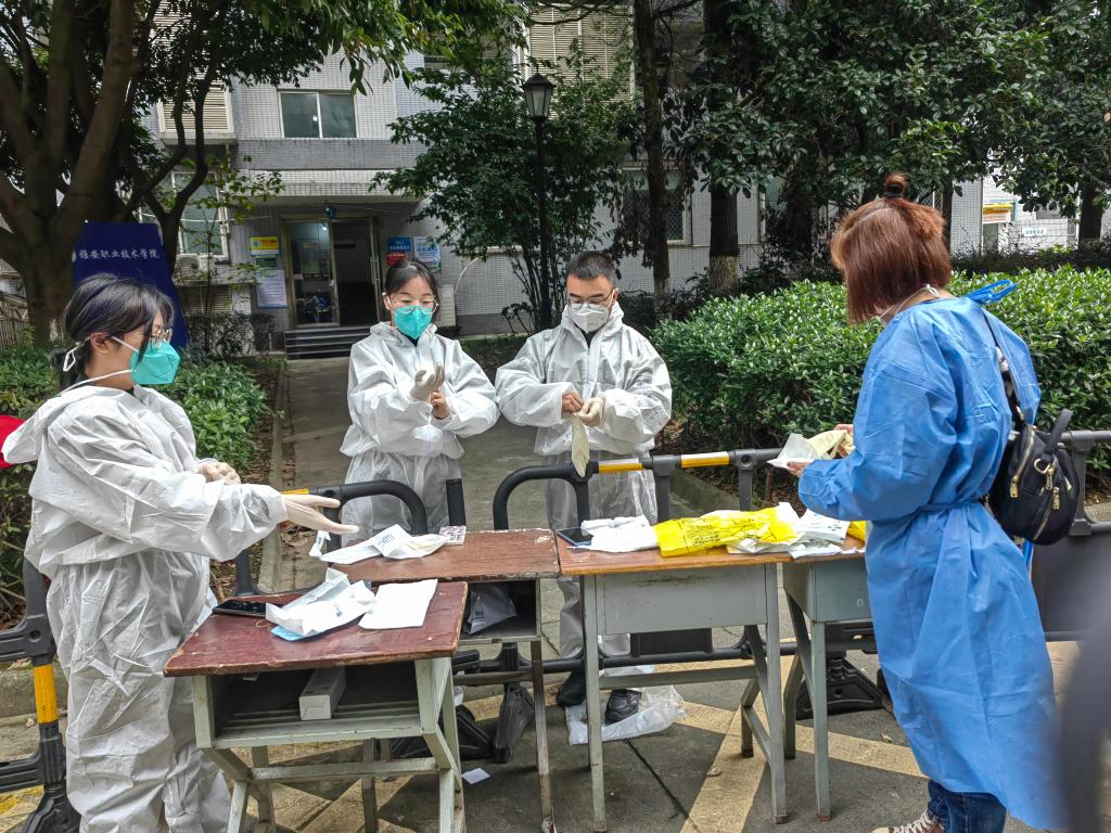10月11日,宣传统战部新进教师周琨瞒着腰部扭伤的情况,加入首批教师志愿服务队,进驻育才路校区健康观察点,积极参与到为学生配送三餐、收拾生活垃圾的志愿服务中,10月12日—14日,宣传统战部新进教师鲁玉连续三天奋战在育才路校区健康观察点,除完成志愿服务工作外,还要见缝插针地采写新闻信息。她们虽为“新兵”,却敢于冲锋在前;虽入职不久,却毅然投入战“疫”。她们是雅职青年教师的缩影。