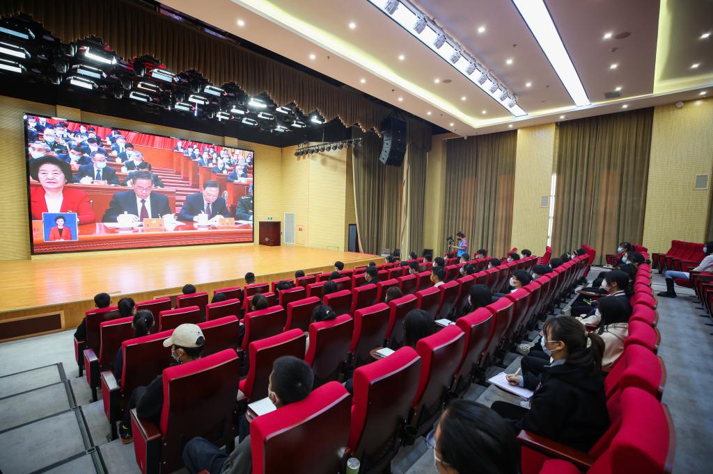 今天上午10点,中国共产党第二十次全国代表大会开幕会在北京人民大会堂隆重开幕,习近平代表第十九届中央委员会向大会作报告。学院组织全体党政班子成员、中层干部、党支部书记、人大代表、政协委员、民主党派负责人、无党派人士代表,各党总支(直属党支部)组织班团干部、入党积极分子代表共700余人按疫情防控要求分三校区在各集中收看点进行收看,其余师生在寝室、家中通过电视、网络等多种方式自行收听收看了开幕会盛况。