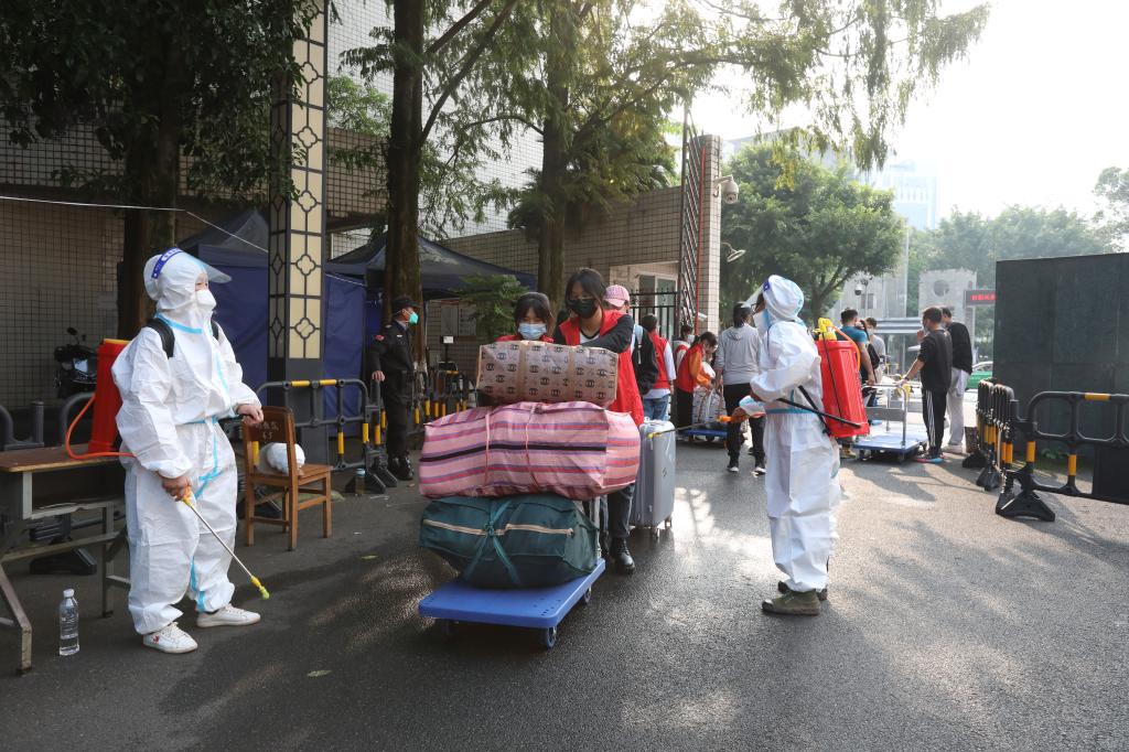 为了给新生入校保驾护航,把防控责任压实,把防疫工作做细,学院在新生报到前夕对新生报到工作进行部署安排。按照疫情防控的要求,出示24小时核酸阴性证明、健康码、行程卡以及提前7天的健康打卡材料。经过验码、消毒、测温、核酸检测等环节即可步行抵达宿舍。教师志愿者们分别坚守在各自岗位上做好服务,做好新生进校第一关把关人。