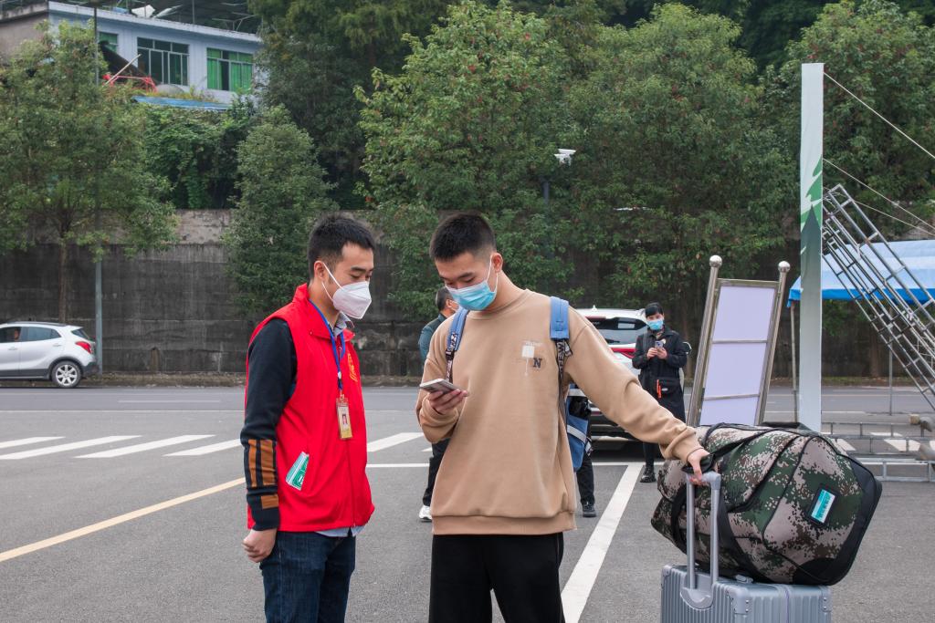 教师志愿者们在校门口负责指导协助学生完成进校核验流程以及维持进校通道畅通。在这里能感受到依依不舍的离别情,也能体会到青春昂扬的凌云志。“孩子们,排好队不着急”、“孩子,这个推车上是你的行李,跟着我走”,“家长您放心,我们一定会照顾好你们的孩子”……志愿者老师们在迎新志愿服务的过程中一遍又一遍的重复着这些话语。