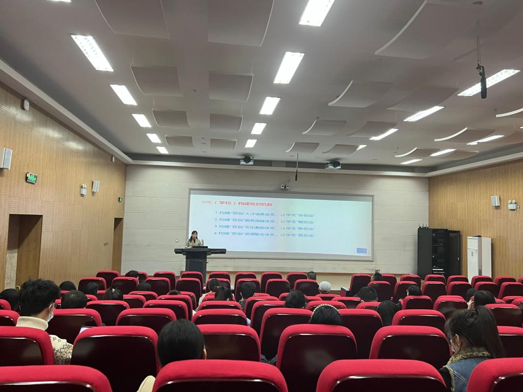 仪式结束后,学院党委委员、校内优秀双创教师刘永恩主讲第一阶段第一模块。她依托“互联网+”大赛为背景,从“怎么看,怎么办,怎么干”三个方面围绕双创教育、师资成长、大赛规则、项目发掘及指导等方面内容进行了培训和交流。