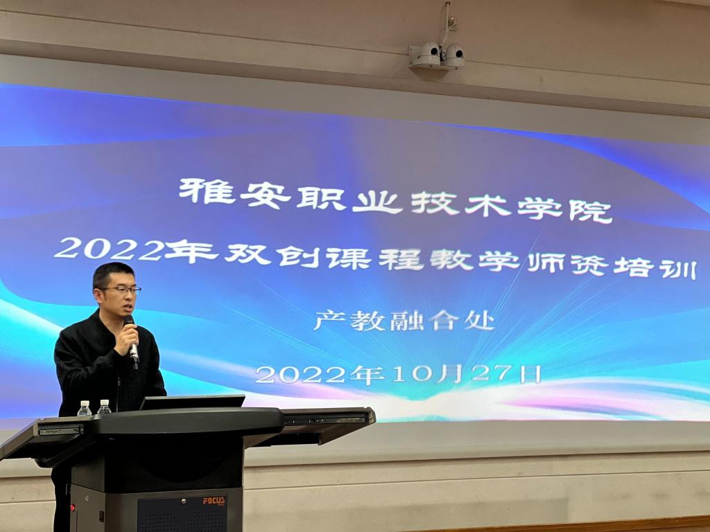 为贯彻教育部有关深化高校创新创业教育改革的文件精神,积极探索建设具有PP电子特色的双创课程教学模式,提升双创课程教师的教学能力和教学质量,打造一支高素质、业务精湛、专业化和充满活力的双创教师队伍,助力PP电子新老教师的职业成长,产教融合处组织开展2022年双创课程教学师资培训计划,并于10月27日在经开校区2204多功能厅举行开班仪式和第一场培训。副院长彭裕红、产教融合处负责人、二级学院参培教师共计50人参加此次培训。