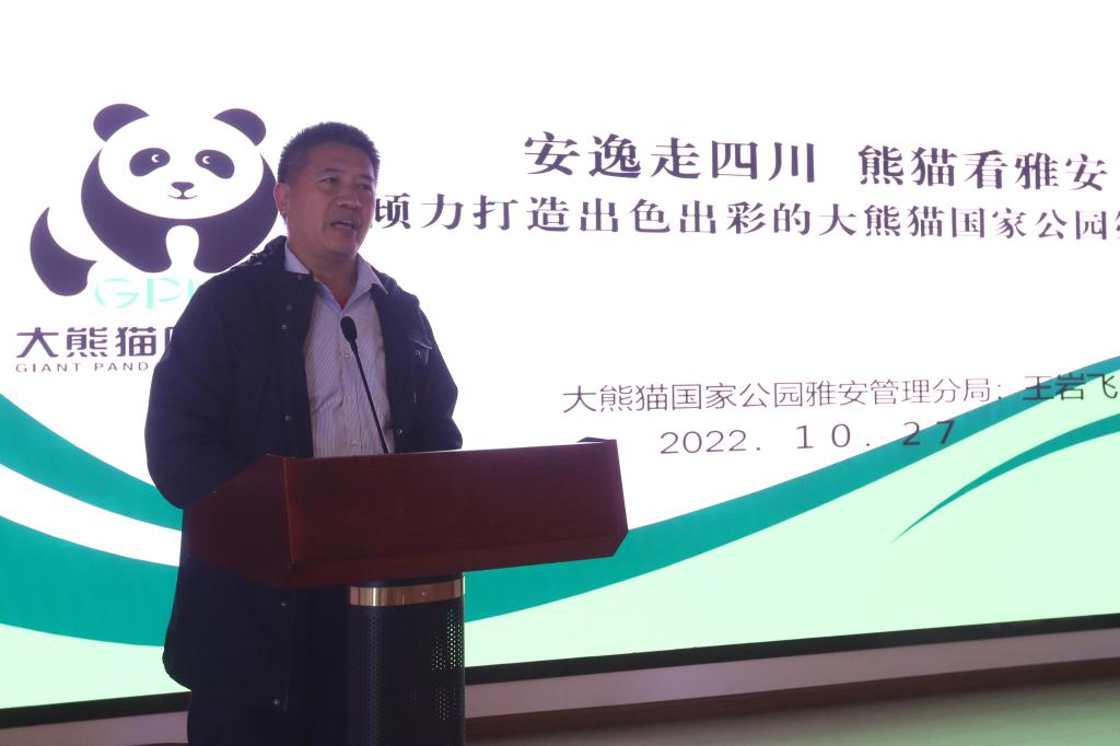 王岩飞以《倾力打造出色出彩的大熊猫国家公园第一市》为主题,择其精要进行了讲座分享,他围绕国家公园概念、大熊猫国家公园雅安片区基本情况、大熊猫国家公园建设的工作实例进行讲解,指明了雅安禀赋优越,多项关于大熊猫的数据排名全国、全省第一,提出要抓住机遇、倾力打造大熊猫国家公园第一市。