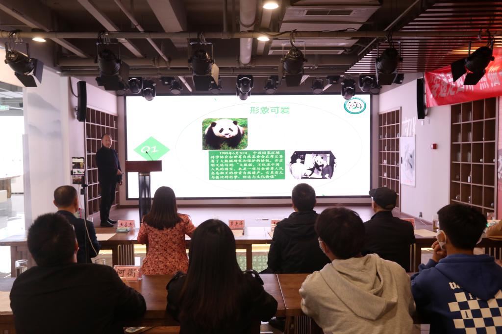 活动中,罗光泽为在座师生作了题为《熊猫文化 世界共享》的讲座分享。他从“为什么大家都喜爱大熊猫?”“熊猫热这一现象从何而来?”“大熊猫何以能成为一种中国文化?”“大熊猫承担着怎样的文化外交功能?”“怎样去延伸大熊猫文化?”“大熊猫文化怎样与经济社会融合发展?”六个方面分享了大熊猫之所以能成为“国宝”、成为中国形象名片背后的生物价值与文化价值;解析了大熊猫从“生物熊猫”逐渐走向“文化熊猫”、“数字熊猫”、“经济熊猫”的历程;提出我们要深入学习宣传贯彻党的二十大精神,用二十大精神指导大熊猫生态文化事业,促进生态文明建设高质量发展。