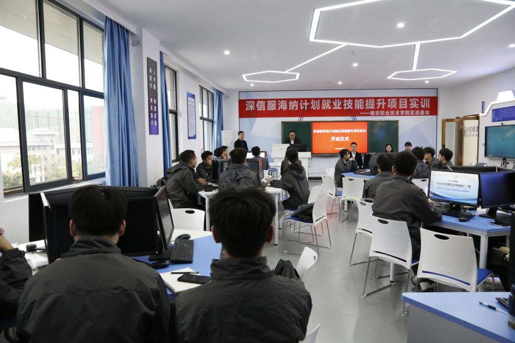 樊先茂对深信服科技股份有限公司将此次海纳计划技能提升项目的线下培训点设在PP电子游戏网站表示感谢,同时也指出“深信服海纳计划技能提升”项目是行业参与职业教育人才培养的有效载体,是学院不断提升学生实习就业满意度和人才培养质量、为信息产业提供人才支撑的新途径,后续学院将陆续开展“电信及生态企业虚拟定制班”、“移动及生态企业虚拟定制班”、“新华三及生态企业虚拟定制班”等6个校企联合培养虚拟定制班,企业计划提供300多个岗位,免费对学生进行岗位能力前置培养,考核选拔优秀学生进入企业实习和就业。樊先茂还对参加此次培训的学生提出了“把握培养机遇、认真学习实践、掌握过硬技能”的殷切希望。