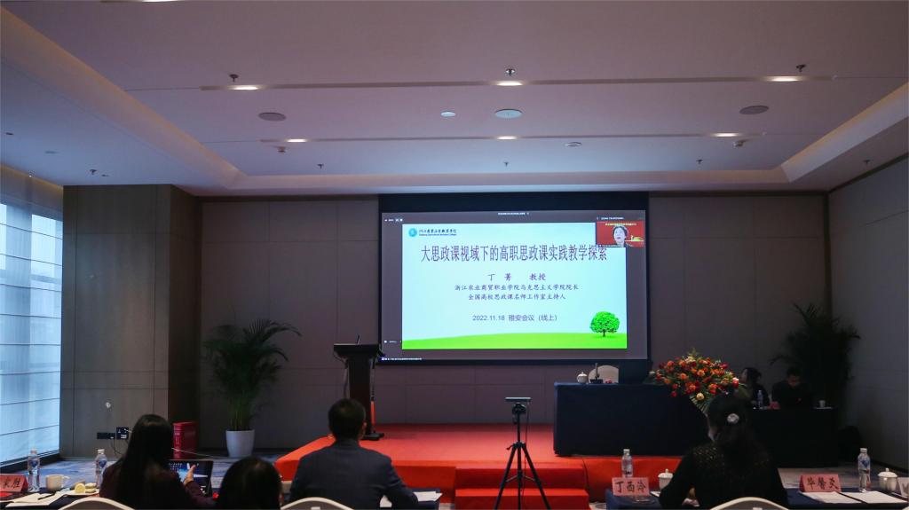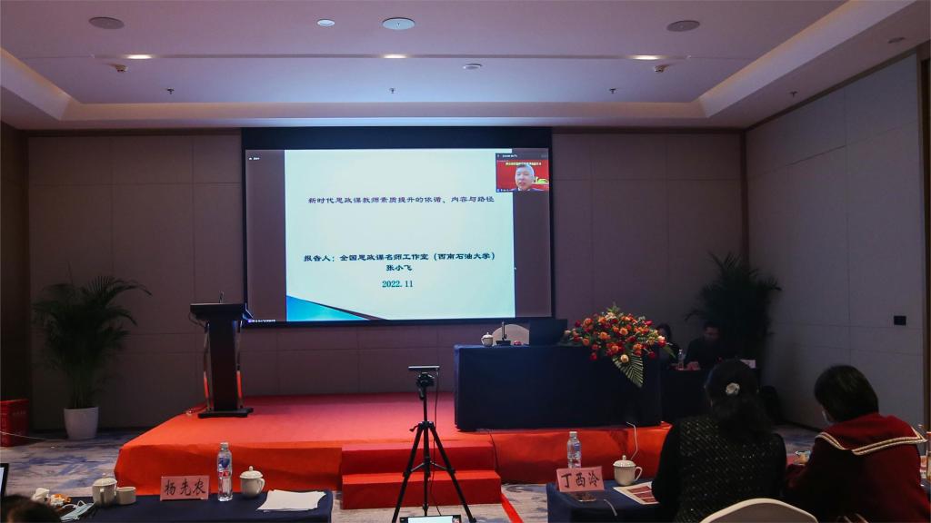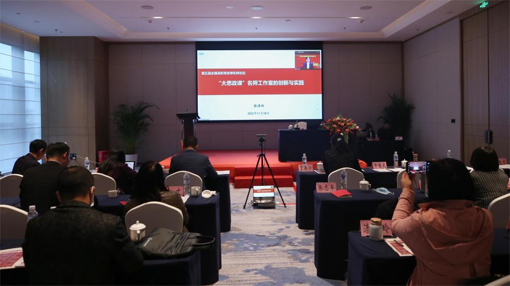 在名师分享环节,浙江农业商贸职业技术学院党委委员、马克思主义学院院长丁菁,天津城市建设管理职业技术学院马克思主义学院教授张泽玲,重庆城市管理职业技术学院党委委员、党委宣传部部长、马克思主义学院党总支书记喻永均,福建信息职业技术学院马克思主义学院直属党支部书记、院长黄冬福,西南石油大学马克思主义学院教授张小飞、广州番禺职业技术学院马克思主义学院副院长蒋家胜,四川交通职业技术学院马克思主义学院党总支书记徐文,以及我院马克思主义学院副院长王坤容等教师就党的二十大精神融入思政课教学、大思政课建设、名师工作室建设、马院建设等作了交流发言,进行了深入研讨。