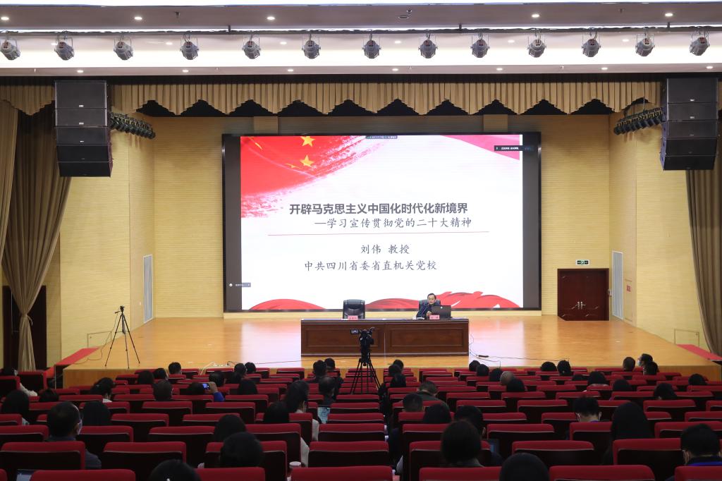 开幕式后随即举办了专题讲座,四川省委省直机关党校校委委员、科社法学教研部主任刘伟教授做了《开辟马克思主义中国化和时代化新境界——学习宣传贯彻党的二十大精神》辅导报告,从充分认识党的二十大的重要意义,全面准确学习领会党的二十大精神,贯彻落实好党的二十大做出的重大决策三个方面进行了深入浅出的理论阐释,旁征博引的精彩分析,增进了大家对党的二十大报告的全面系统把握,为思想政治教师带来了有益的学术启迪和深刻的教学思考。