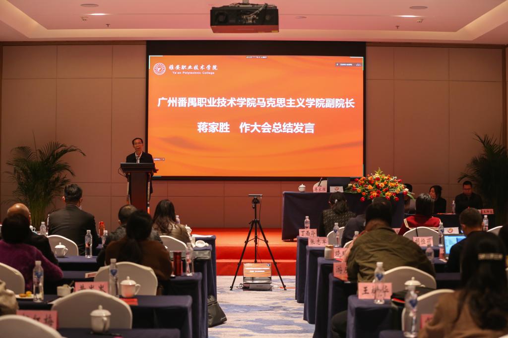 广州番禺职业技术学院马克思主义学院副院长蒋家胜教授做论坛总结,指出本次论坛专题报告、名师分享质量很高,论坛组织安排得很紧凑、很务实、很有效率,大家提高了理论修养,交流了思想,分享了实践经验,促进了高职院校思政课进一步改革创新。