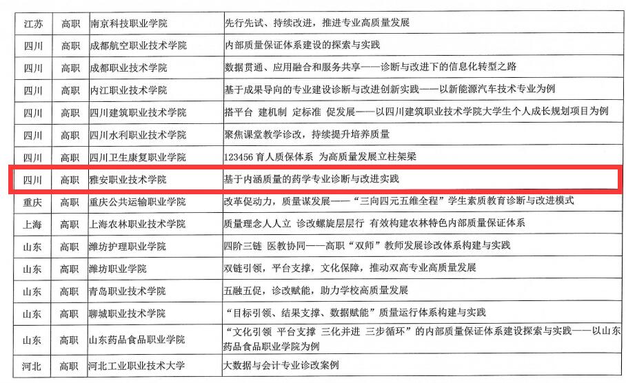近日,中国教育科学研究院职业教育与继续教育研究所公布了2022年职业院校教学诊断与改进典型案例评选结果,我院报送的案例《基于内涵质量的药学专业诊断与改进实践》,入选年度诊改典型案例,充分体现了对学院内部教学质量保障体系建设工作的肯定。