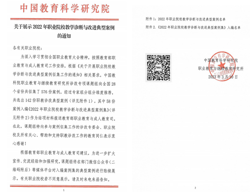 本次评选旨在深入学习贯彻全国职业教育大会精神,全面落实中办、国办《关于推动现代职业教育高质量发展的意见》有关要求,积极推进职业院校教学诊断与改进创新发展。经专家评审,从全国28个省份的576份案例中,共选出142份职业教育诊改典型案例。