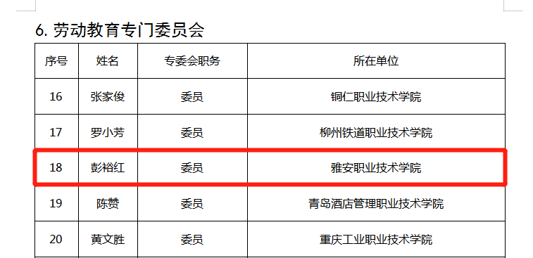 学院副院长彭裕红入选教育部职业院校文化素质教育指导委员会劳动教育专门委员会委员。