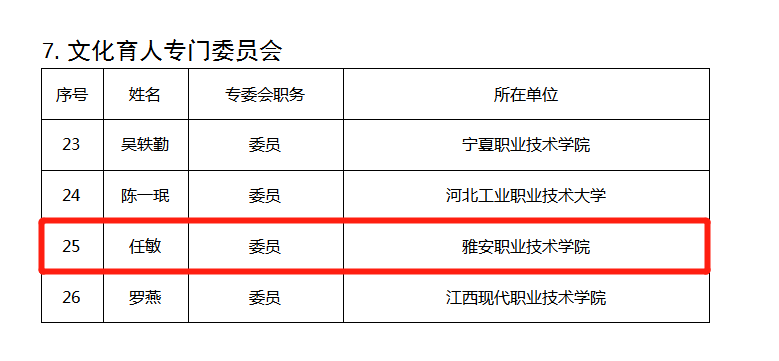 经济与管理学院直属党支部副书记任敏入选教育部职业院校文化素质教育指导委员会文化育人专门委员会委员。
