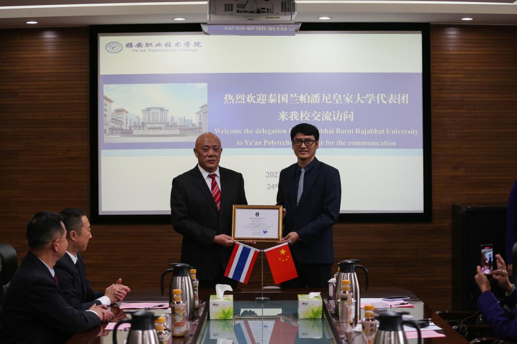 在参会人员的共同见证下,双方签署了校际合作备忘录,泰方向我院相关院领导颁发了客座教授荣誉证书,双方就相关合作具体事项进行了深度沟通并达成共识。此次签约会促进了学院与泰国高校在教育、文化、医疗等领域的深度合作,并以此为契机,助推雅安与泰国建立友好城市,开展经贸、旅游、教育、文化等实质性的交流与合作。