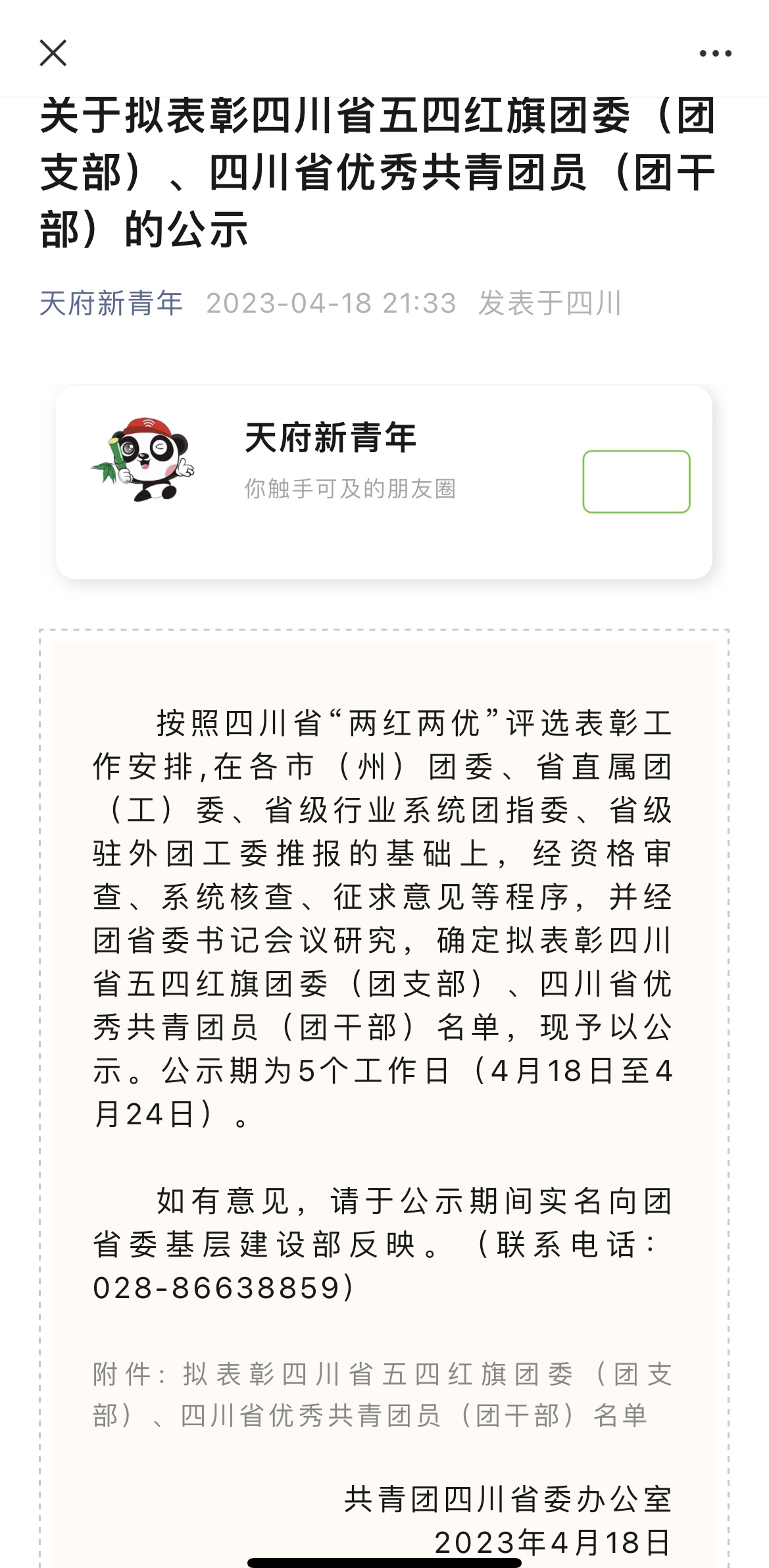 近日,共青团四川省委发布了关于表彰四川省五四红旗团委(团支部)、四川省优秀共青团员(团干部)的决定。