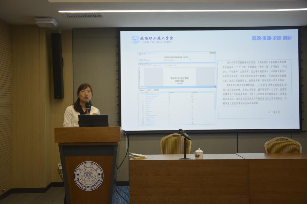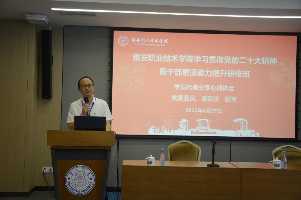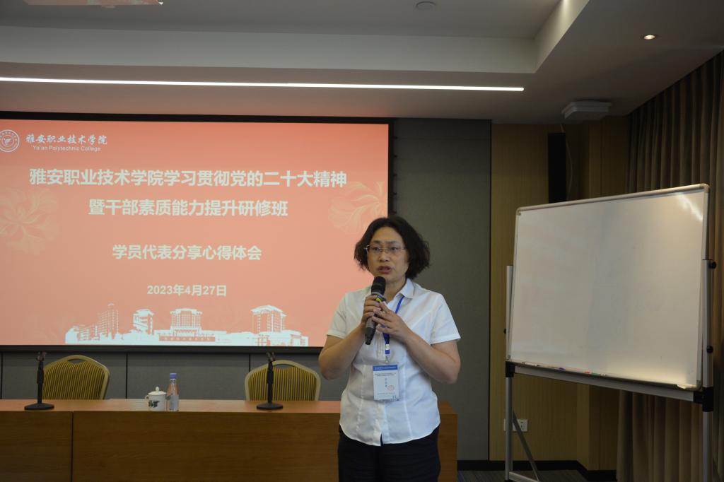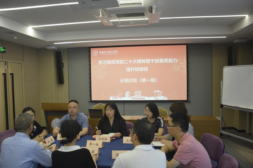在学习交流汇报环节,党委委员、副院长张军,工会主席夏安琼及其他3位学员代表分享了心得体会,表示5天的培训受益匪浅,要将本次培训学习的收获与实际工作结合起来、与学校治理能力提升工作结合起来,围绕立德树人根本任务,发挥领导干部模范带头作用,努力提高自身的政治素养、知识水平、业务素质和管理能力,为推进学院高质量发展贡献力量。4位组长分别汇报了各组交流讨论情况,大家认为本次培训方案周密,学习内容充实;主讲嘉宾报告精彩,为学院高质量发展提供了有益指导;全体干部精神状态好,主题发言准备充分,符合学校当前实际和未来发展需要;学习调研丰富多彩,进一步拓宽了大家的视野,有效提升了学院人才培养质量、治理水平、师德师风建设。