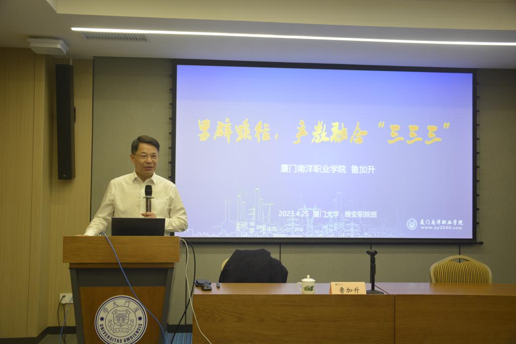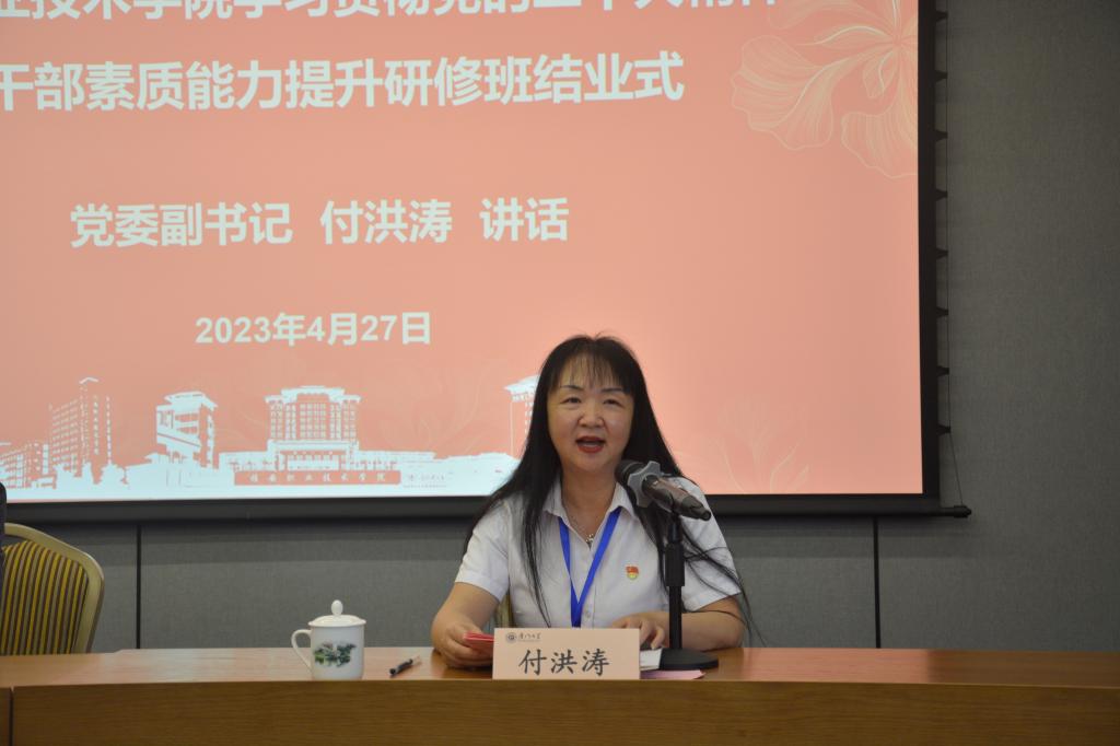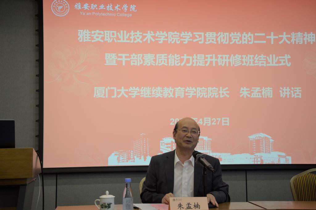 4月23-27日,学院“学习贯彻党的二十大精神 凝心聚力争当职教排头兵”干部素质能力提升研修班在厦门大学顺利举行,学院部分党政班子成员和中层干部39人参加培训学习。27日下午,厦门大学继续教育学院院长朱孟楠出席研修班结业式并讲话,结业式由学院党委副书记付洪涛主持。