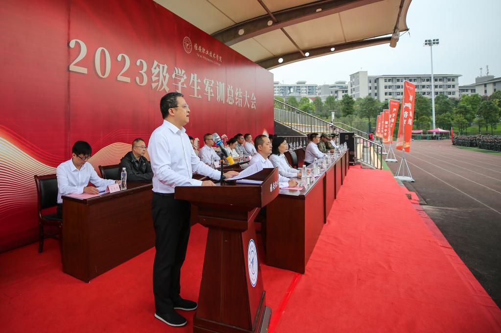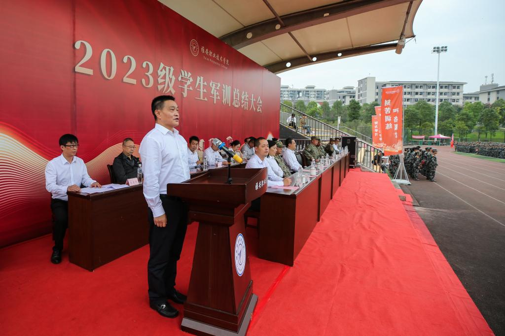 颁奖仪式结束后,梅旭东作了讲话,他对2023级新生圆满完成军训技能训练任务和精彩的成果汇报表示热烈的祝贺,并对全体新生提出厚植爱国情怀,牢固树立国防意识的希望。