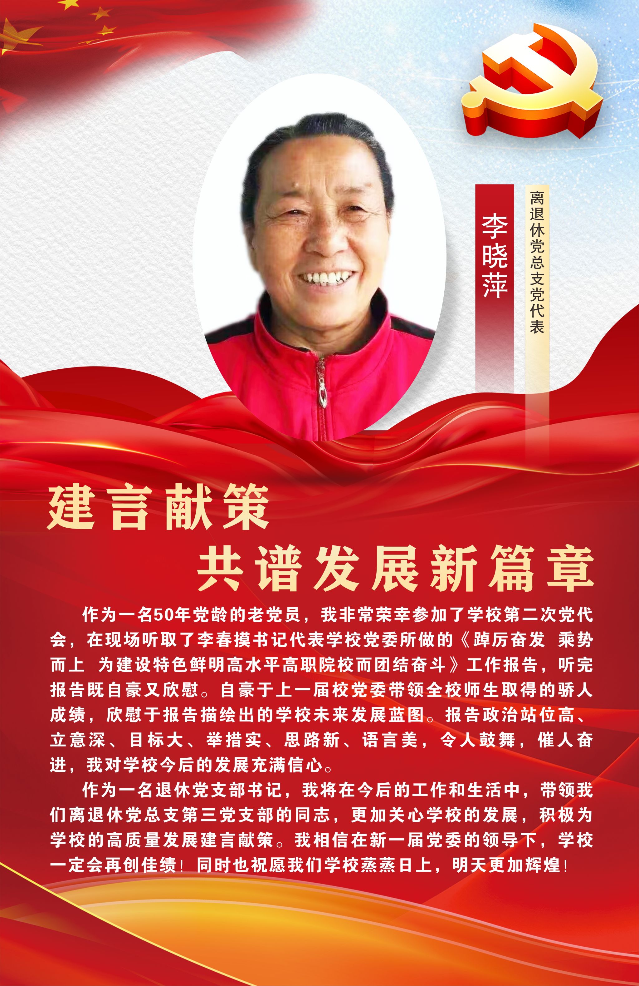 12月29日,中国共产党PP电子游戏网站第二次党员代表大会在经开区校区聚雅厅胜利闭幕。此次大会对学校未来发展建设有着谋篇布局、举旗定向的关键作用,是全校师生政治生活中的一件大事。让我们高举中国特色社会主义伟大旗帜,以习近平新时代中国特色社会主义思想为指导,坚持立德树人根本任务,坚守为党育人、为国育才初心使命,始终心怀“国之大者”“省之大计”“市之大事”,坚定信心,同心同德,以时不我待只争朝夕的精神状态,踔厉奋发、乘势而上,为建设特色鲜明高水平高职院校而团结奋斗,在以中国式现代化引领职业教育高质量发展的征程中贡献雅职力量。
