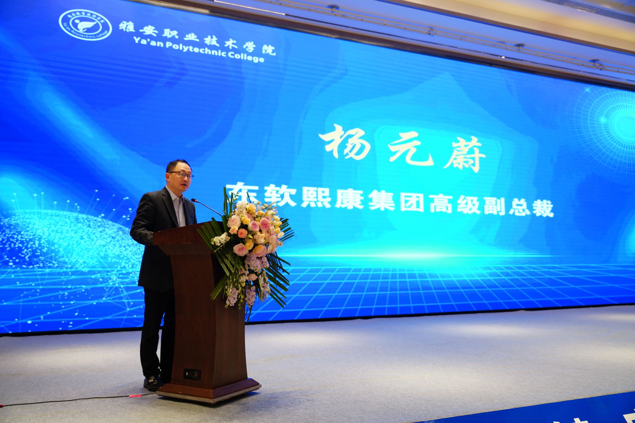 4月28日,由学校和东软熙康健康科技有限公司、西南医科大学共同牵头举办的数智健康管理产教融合共同体成立大会暨首届数智健康管理与教育数字化转型论坛在雅安隆重召开,来自全国医学界和教育界的300余位嘉宾参会。学校党委书记李春模、西南医科大学医学信息与工程学院院长罗亚梅、东软熙康集团高级副总裁杨元蔚出席会议并致辞。大会由学校党委副书记、校长黄诚主持。