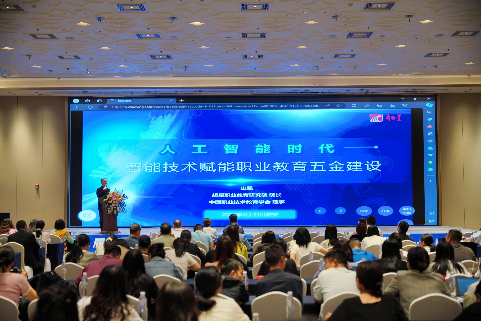 超星集团副总裁史强以《人工智能时代智能技术赋能职业教育五金建设》为题,详细阐述了如何用智能技术赋能“金专、金课、金师、金教材、金基地”建设;电子科技大学教授蒲晓蓉以《AI大模型及其在医疗健康领域的应用》为题,介绍了AI大模型的概念和发展,分享了她和团队AI医疗大模型的应用场景和案例;天津天堰科技股份有限公司西南华南总经理李品作了《现代信息技术与医学教育创新发展》报告,介绍了虚拟现实、机器人、人工智能等医学教育新技术及其典型应用;北京智蓝墨信息技术有限公司总监马腾龙以《教材数字化转型服务教师专业发展——新形态数字教材(云教材)建设》进行了交流。
