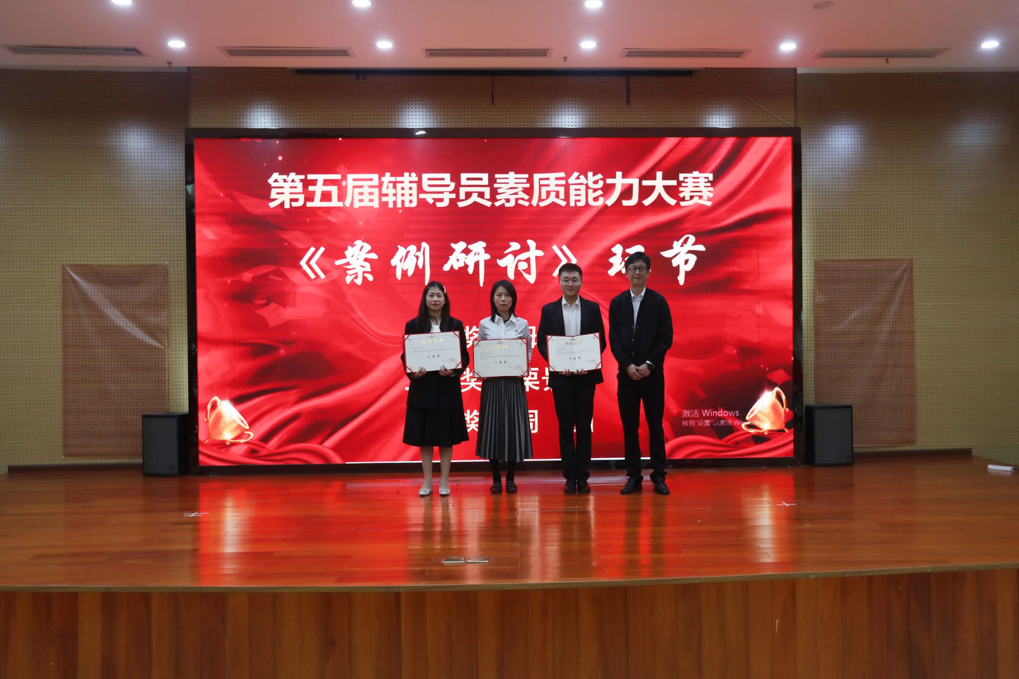 此次大赛本着“以赛促学、以赛代练”理念,经过各二级学院层层选拔,共评出14名辅导员进入决赛,决赛阶段分为“案例研讨”和“谈心谈话”两个赛项。案例研讨环节,参赛辅导员以互相提问和作答的方式,对有关学生学业就业、经济困难、思想政治、人际交往及情感等方面的典型案例进行判断与研讨,全面展示了辅导员的理论素养和专业素质。谈心谈话环节,通过情景再现的形式,辅导员与学生们进行面对面深入交流,谈话内容涉及思想政治、日常管理、心理健康等多个方面。针对学生具体问题,辅导员认真聆听、全面分析、循循善诱、合理引导,充分体现了辅导员对学生成长成才规律的把握和教育引导能力,助演学生也全力配合辅导员进行展示,现场掌声不断。最终,临床医学院获得团体一等奖,周圆等6人次获得个人比赛单项奖。