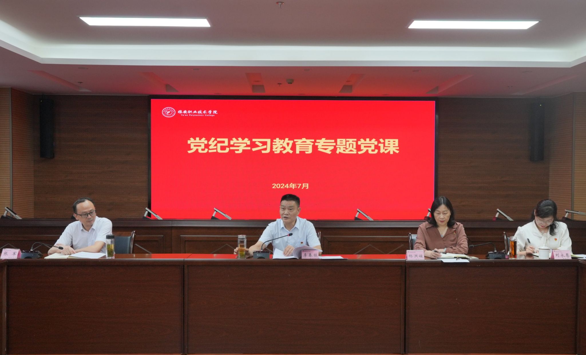 7月9日,学校党委书记李春模在经开区校区311会议室作党纪学习教育专题党课并宣讲省委十二届五次全会、市委五届五次全会精神。