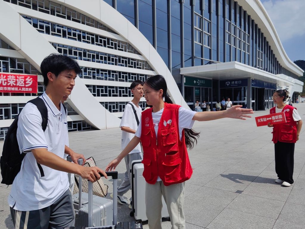 从车站到校区,从报名点到寝室,身着红色服装的雅职青年志愿者穿梭其中,接引着一位又一位新同学。