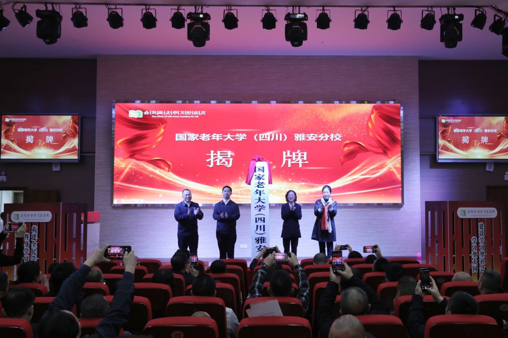 开幕式上,田仁来宣读了四川开放大学《关于设立国家老年大学(四川)雅安分校的通知》,并为国家老年大学(四川)雅安分校揭牌。
